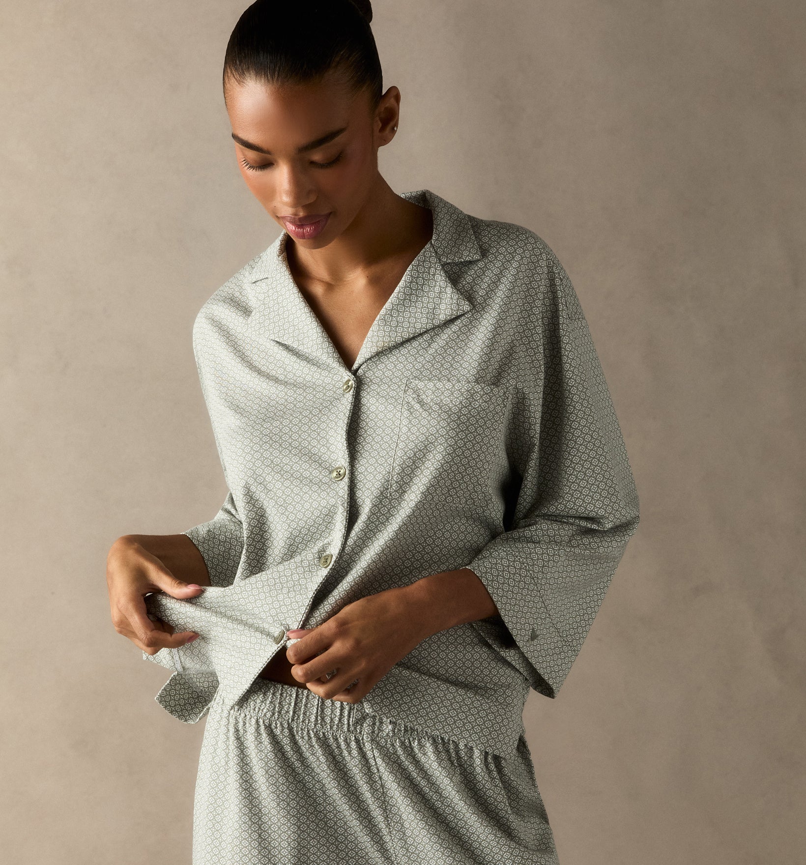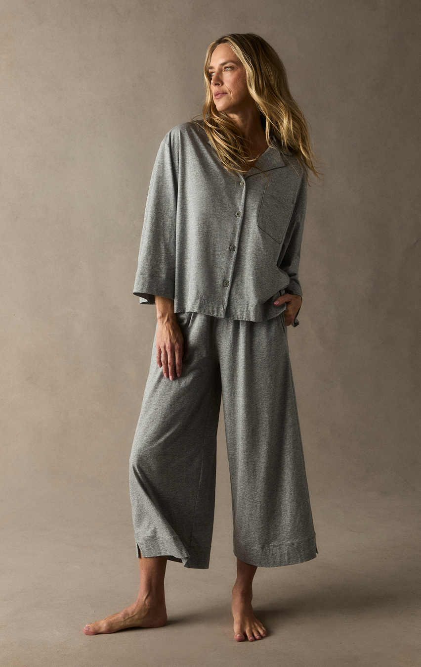 For thousands of years, Pima cotton has been considered royalty in the realm of textiles. This fabric features luxurious 100% Peruvian Pima, woven in a lightweight, breathable weave designed for those who sleep warm and for comfort that carries effortlessly through every season. Long, yarn-dyed fibers give each piece a beautiful depth of color, introduced here in a refined palette of neutral tones meant to be worn, layered, and lived in year-round.